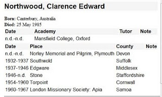 is extracted from cards held at Dr Williams's Library. You can search or browse by surname and location. Here's an example, the only Northwood found. You can also view an image of the original card which may have more information.