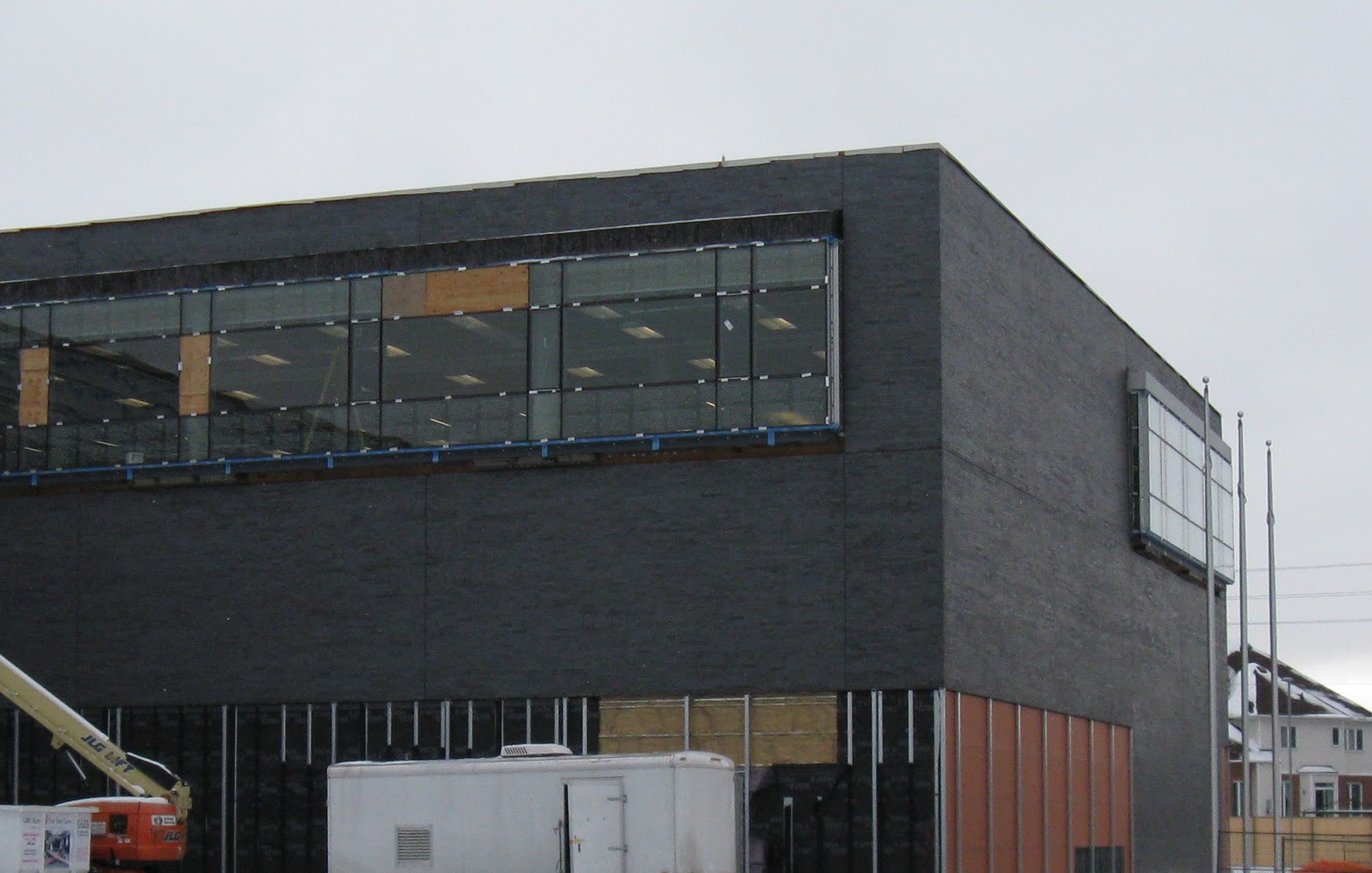 Work on the exterior of the new Ottawa City Archives and Library distribution centre continues in cold conditions. The brown panelling to the right is new since my last visit but doesn't appear to be the final layer.